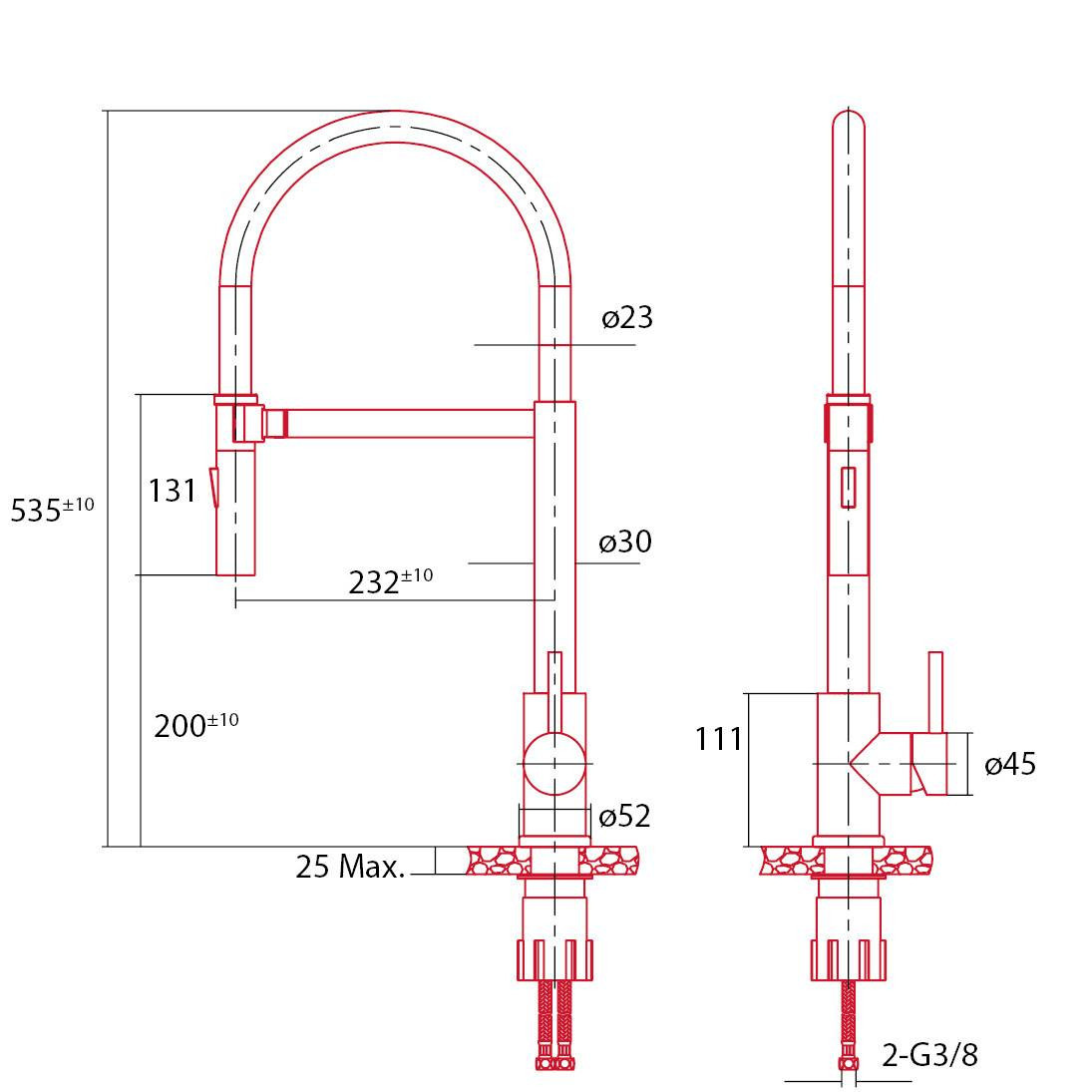 • Cap retractabil: flexibilitate maximă pentru umplerea vaselor mari și curățarea chiuvetei.