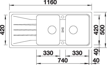 • Două cuve egale și spațioase pentru spălare confortabilă
