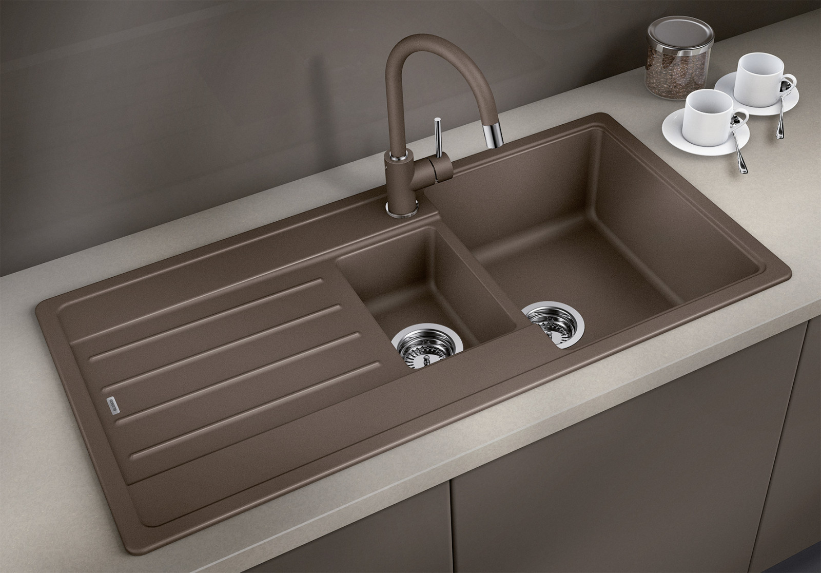 Chiuvetă Silgranit cu design elegant, perfectă pentru bucătăriile contemporane.