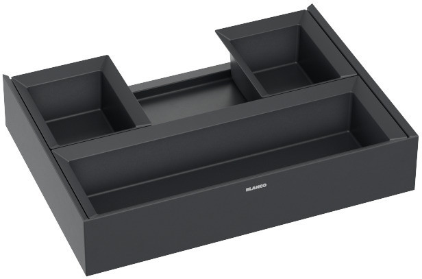 Organizatorul BLANCO este soluția ideală pentru utilizarea inteligentă a spațiului din dulapul de sub chiuvetă. Proiectat special pentru a se integra perfect cu chiuvetele și bateriile BLANCO, acesta oferă organizare optimă și acces facil la toate componentele din dulap. Montajul simplu și instrucțiunile clare permit instalarea rapidă.
