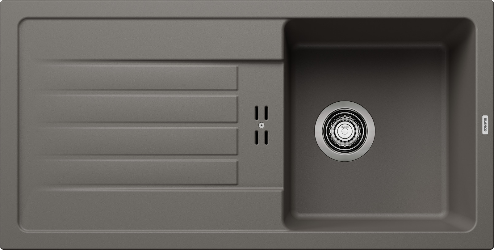 BLANCO FAVUM 45 – chiuvetă BLANCO din Silgranit în gri vulcan, cu design modern și funcționalitate extinsă, perfectă pentru orice bucătărie.