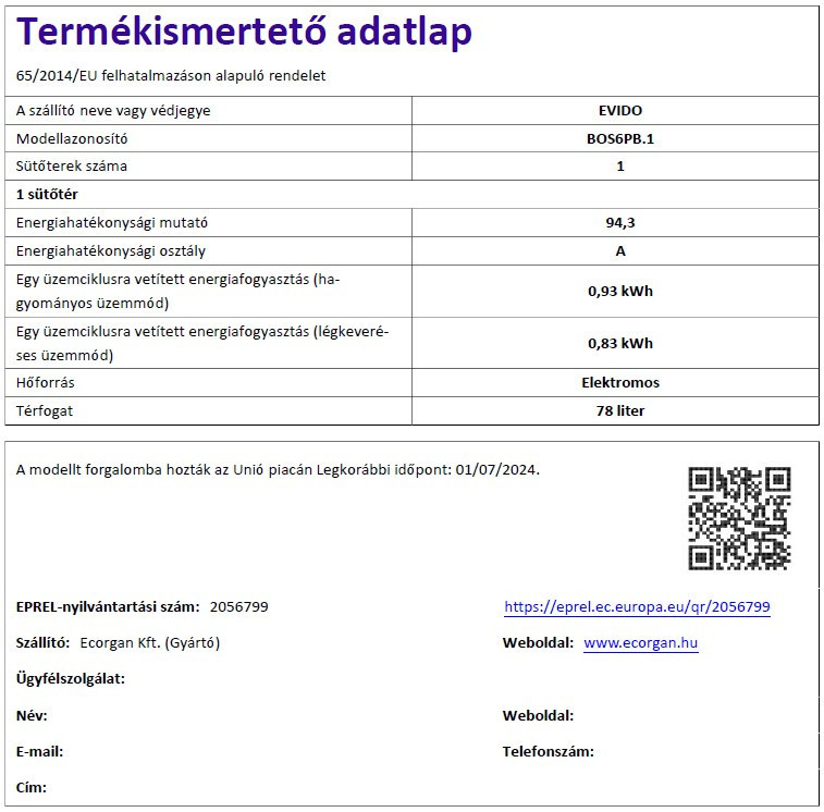 EVIDO SUPRA 60B pirolitikus sütő, fekete