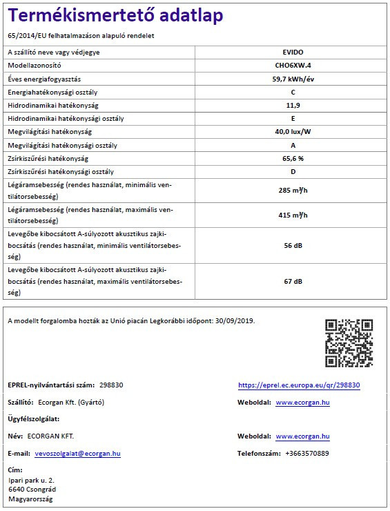 EVIDO ONDA 60W kürtős fali páraelszívó, 60 cm, fehér/inox