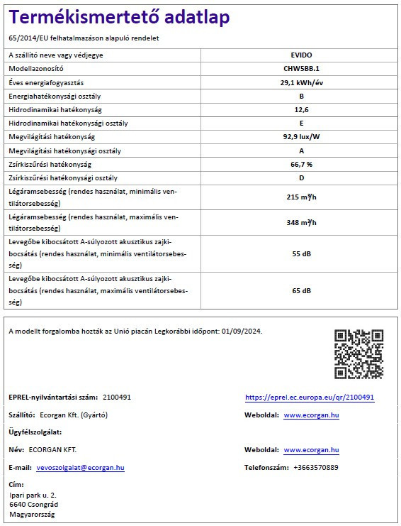 EVIDO TRICOL 50B kürtős fali páraelszívó, 50 cm, fekete