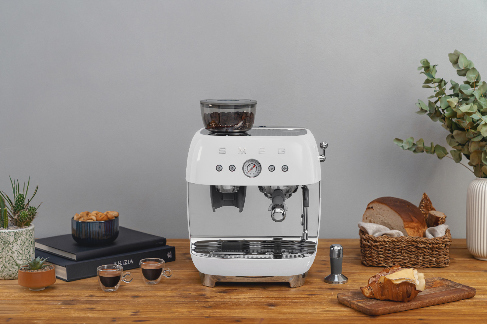 SMEG ŐRLŐVEL KOMBINÁLT ESPRESSO KÁVÉFŐZŐ, retro, fehér