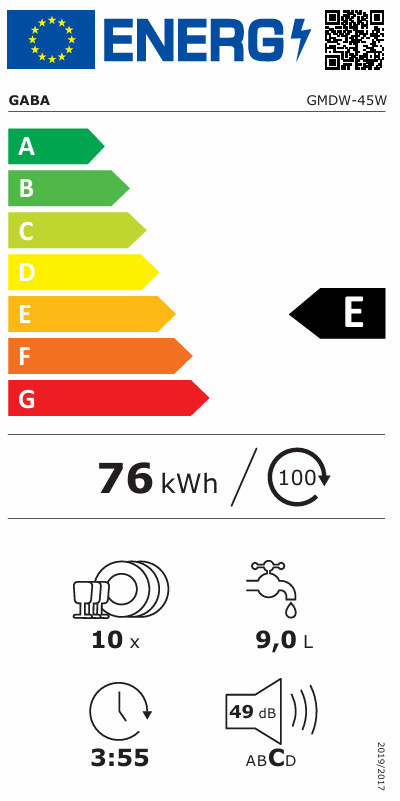 GABA GMDW-45W Szabadonálló mosogatógép | Fehér | 45 cm