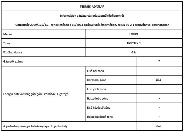 EVIDO DOMINO-G 32X,gáz főzőlap,30cm,inox