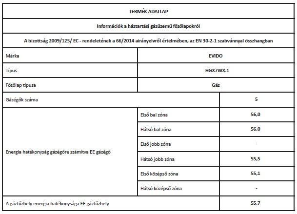 EVIDO VALEO 70X gázfőzőlap,70 cm,WOK,inox