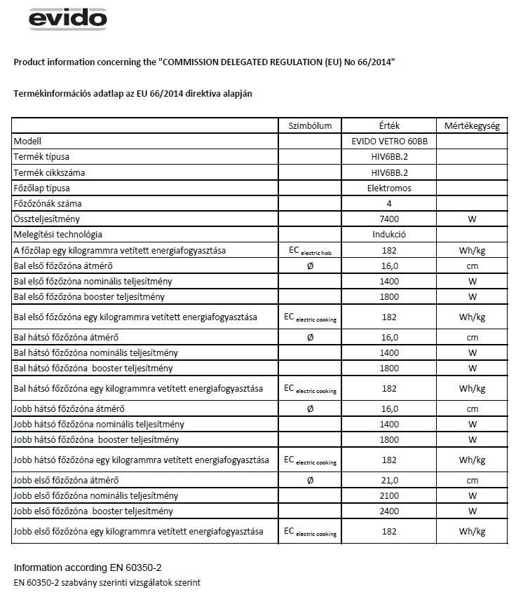 EVIDO VETRO 60BB indukciós főzőlap, 60 cm, multizone, fekete