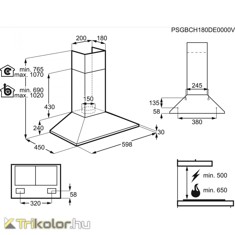Electrolux LFC316X Beépíthető fali kürtős páraelszívó | 420m3/óra | 60 cm | Inox