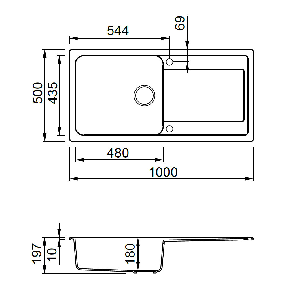 • Material: GRANITEK – granit și rășină acrilică cu nanoparticule ceramice