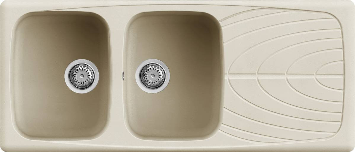 Compozit brevetat de granit și rășină acrilică – rezistă la căldură, zgârieturi și impact.