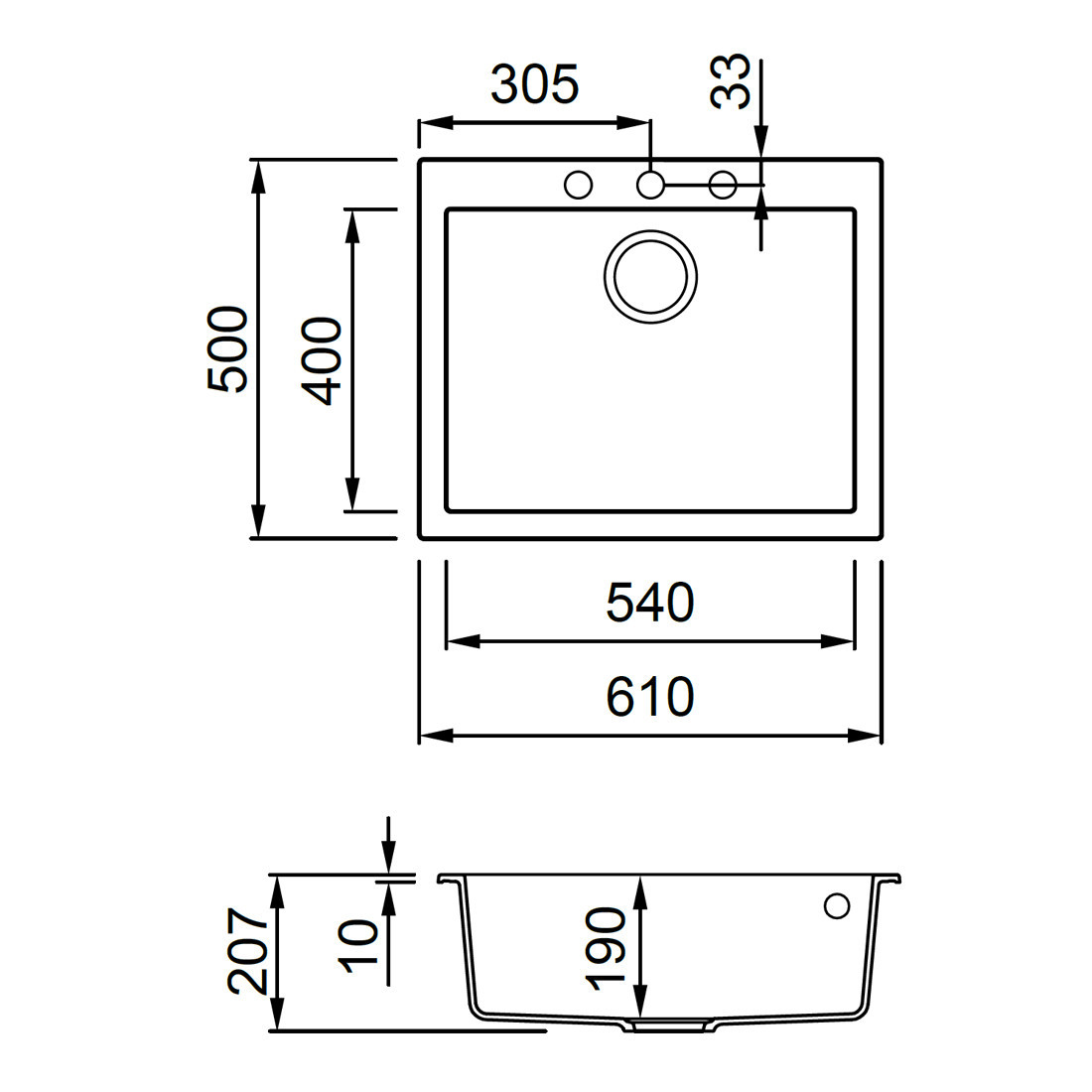 • Material: GRANITEK – granit și rășină acrilică cu nanoparticule ceramice