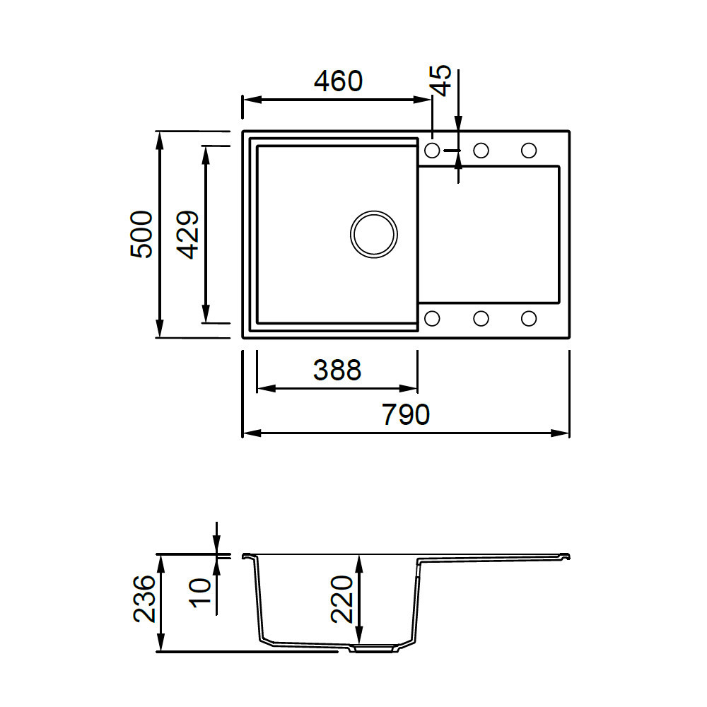 Chiuvetă ELLECI din material Granitek – durabilitate premium și design contemporan.