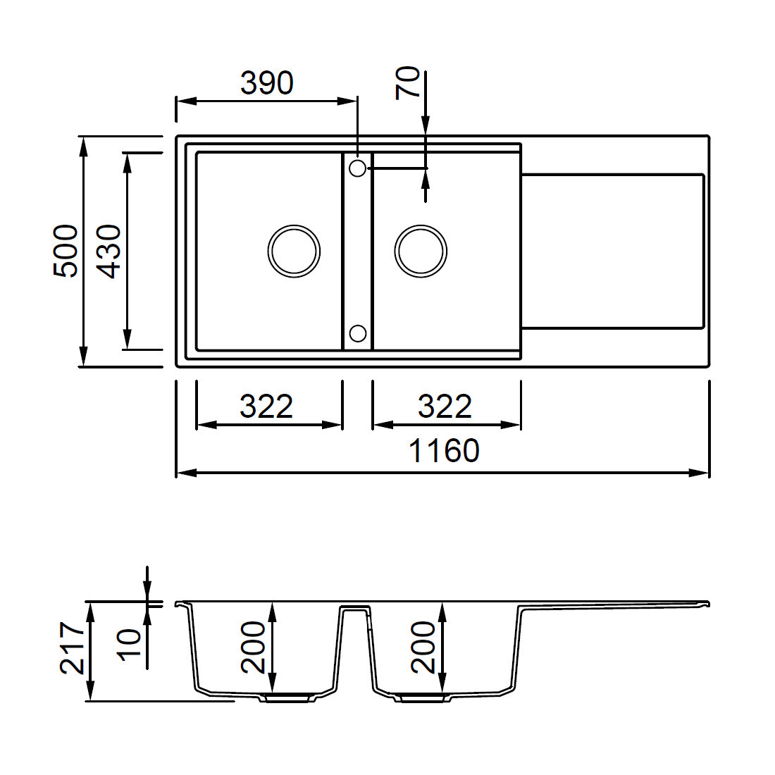 • Material: GRANITEK – granit și rășină acrilică, rezistență superioară