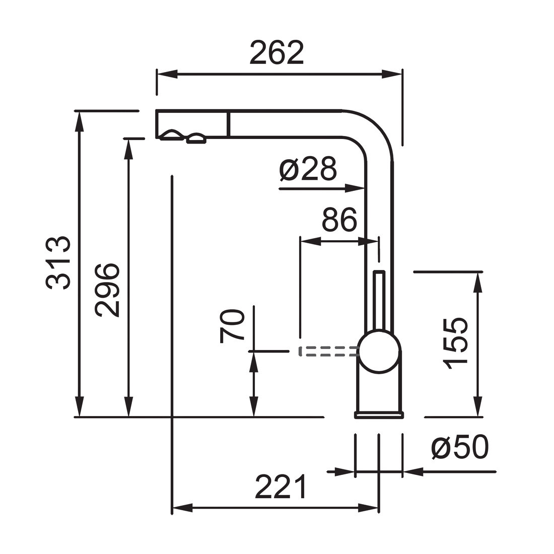 Permite accesul flexibil la orice colț al chiuvetei cu ușurință.
