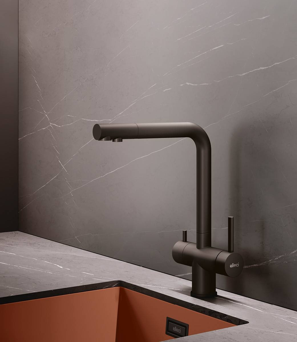 ELLECI Cross pure matt negru – baterie de bucătărie cu cap retractabil în negru mat, combinând design modern și funcționalitate superioară pentru bucătăria ta.